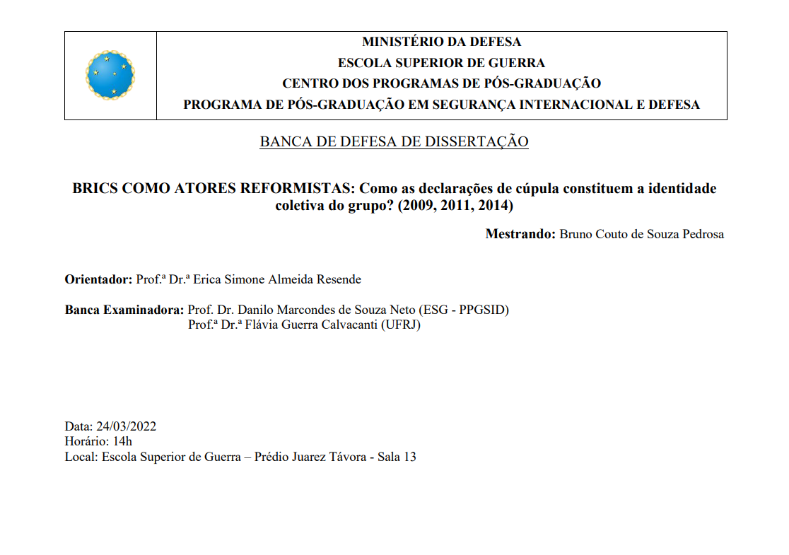 Defesa de Dissertação - Mestrando: Bruno Couto de Souza Pedrosa