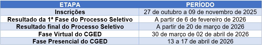 O período de inscrição será informado diretamente no convite encaminhado às instituições.