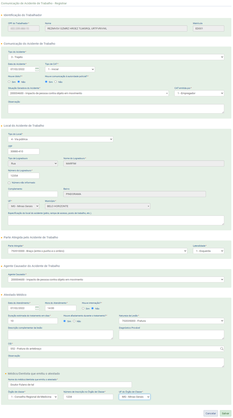 - 7 – CAT – Comunicação de Acidente de Trabalho