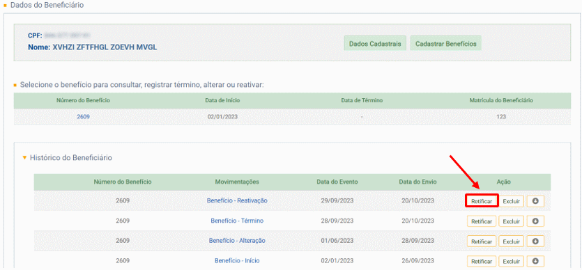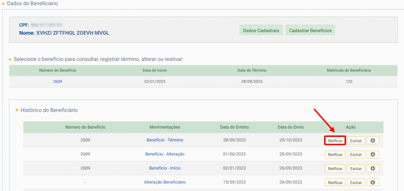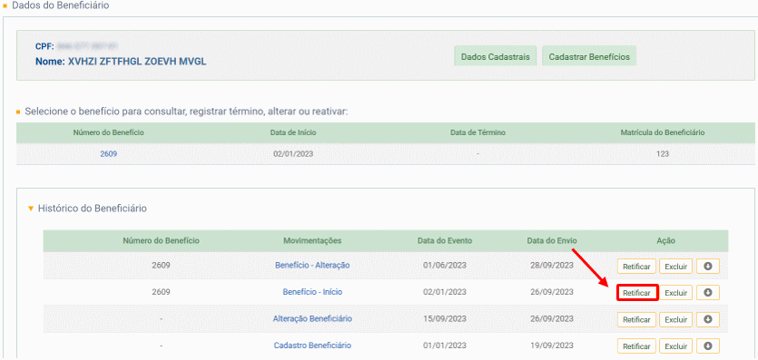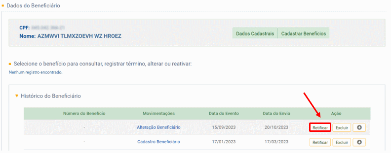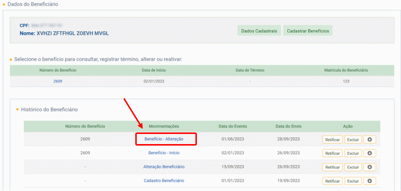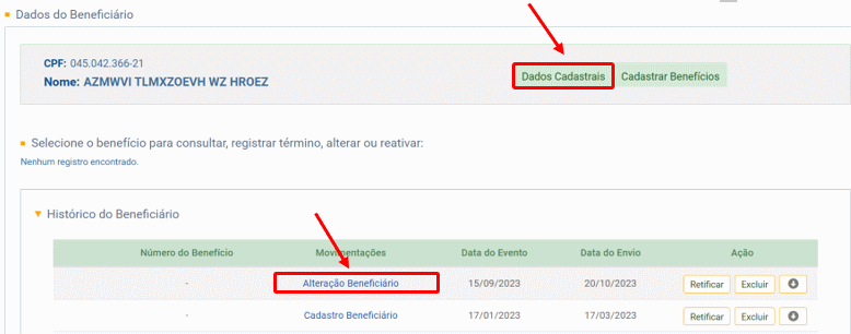 S-2405 - Alteração de Dados Cadastrais do Beneficiário - Entes Públicos