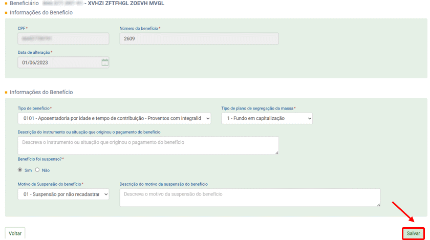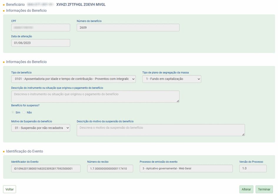 S-2416 - Alteração do Cadastro de Benefícios - Entes Públicos