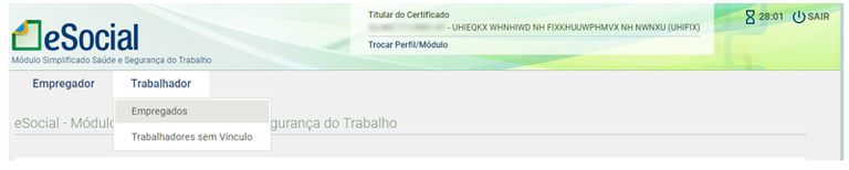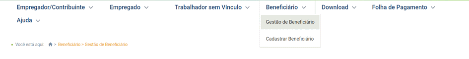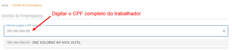 No exemplo acima, ao clicar em “Gestão de Empregados”, o usuário será direcionado para a tela inicial de Gestão de Empregados, onde poderá utilizar o filtro e selecionar outro vínculo para consulta.