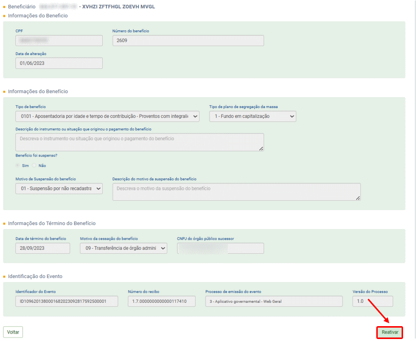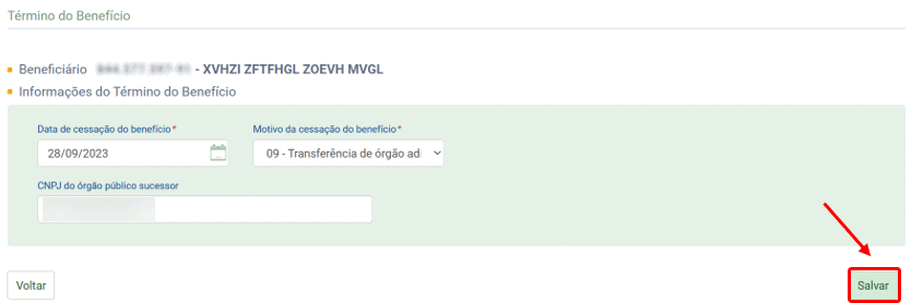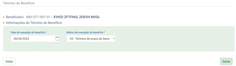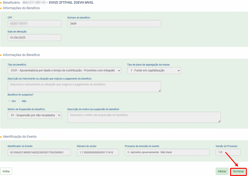 S-2420 - Cadastro de Benefícios - Entes Públicos - Término