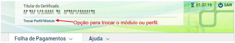 - VOCÊ ESTÁ AQUI: caminho do sistema para a tela atual, com links para voltar às telas anteriores. Localizado no canto superior direito da tela: