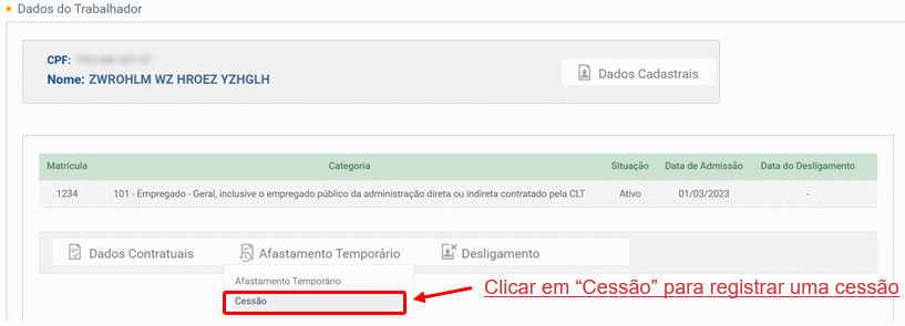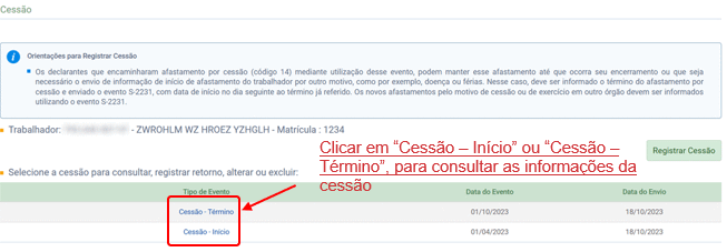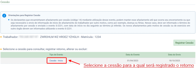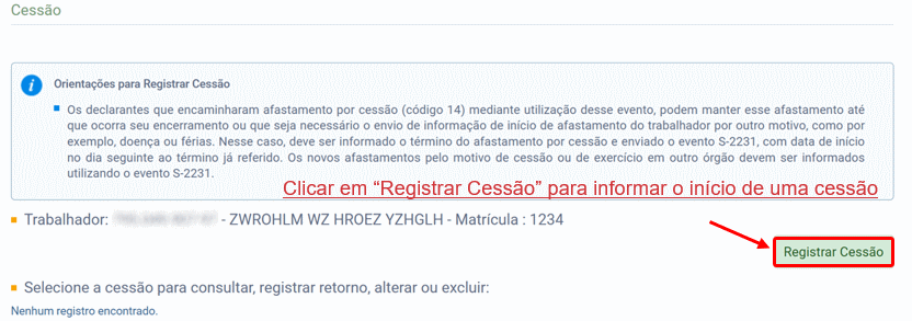 - S-2231 – Cessão/Exercício em Outro Órgão