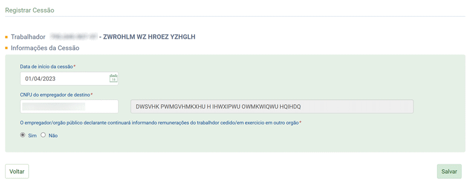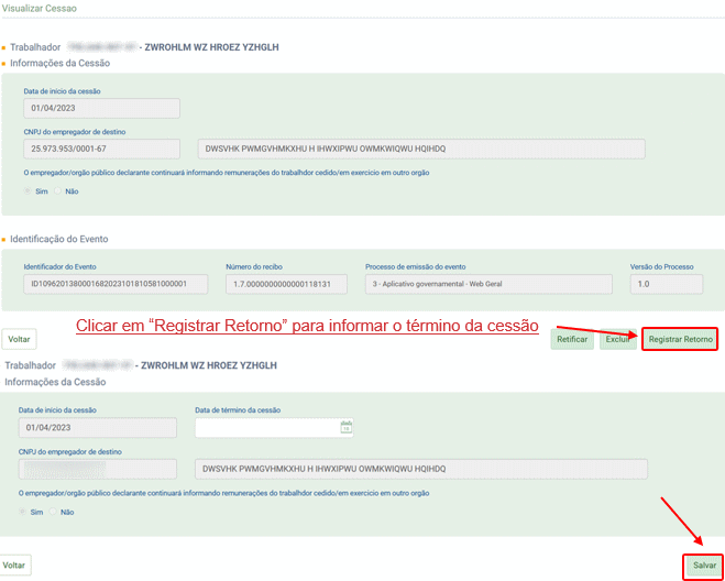 - Inclusão de informação de que o evento é de uso exclusivo e obrigatório para o cessionário (destino do trabalhador) enviar as informações cadastrais e contratuais do cedido.