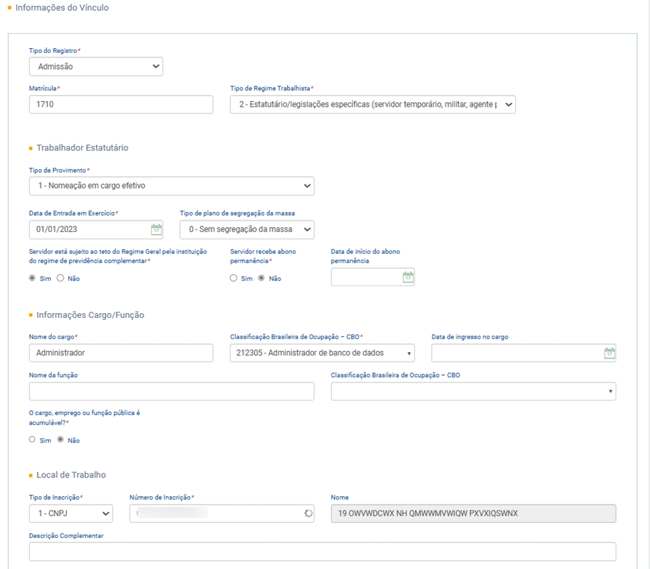 - S-2300 - Trabalhador Sem Vínculo de Emprego/Estatutário – Início