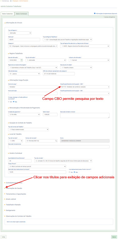S-2200 - Cadastramento Inicial do Vínculo e Admissão/Ingresso de Trabalhador