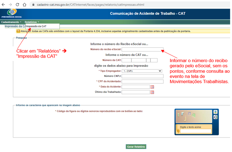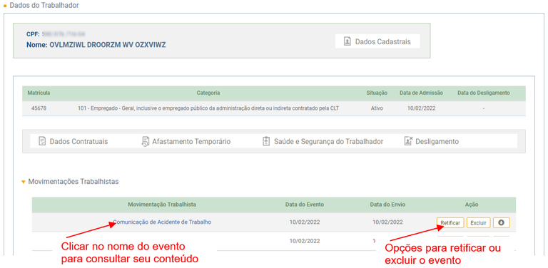 - Exclusão do link de acesso ao evento da Comunicação de Acidente de Trabalho - CAT (S-2210), que agora deverá ser realizado diretamente via módulo SST