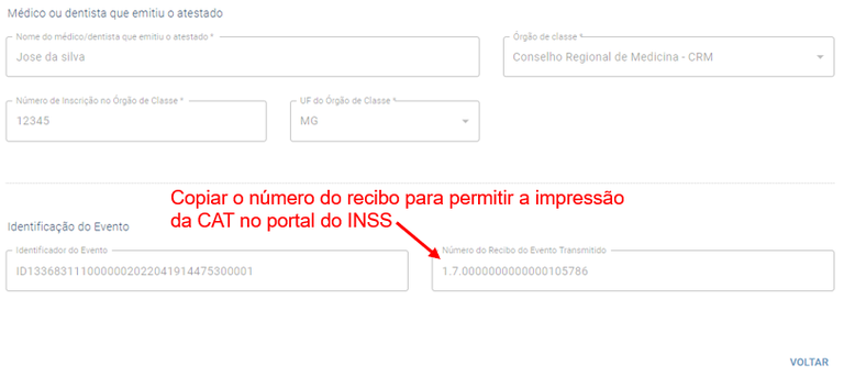 Indicativo de erro no preenchimento dos campos. O usuário deverá corrigir as informações prestadas de acordo com as orientações da mensagem apresentada: