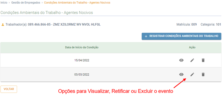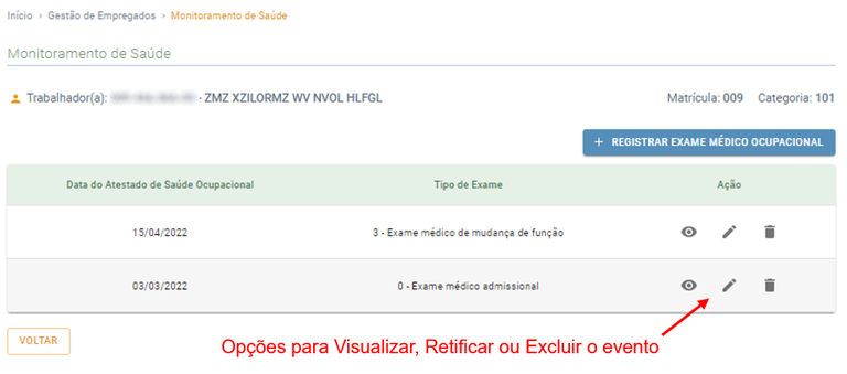 - Inclusão das opções de edição no evento (Inclusão, retificação e exclusão)