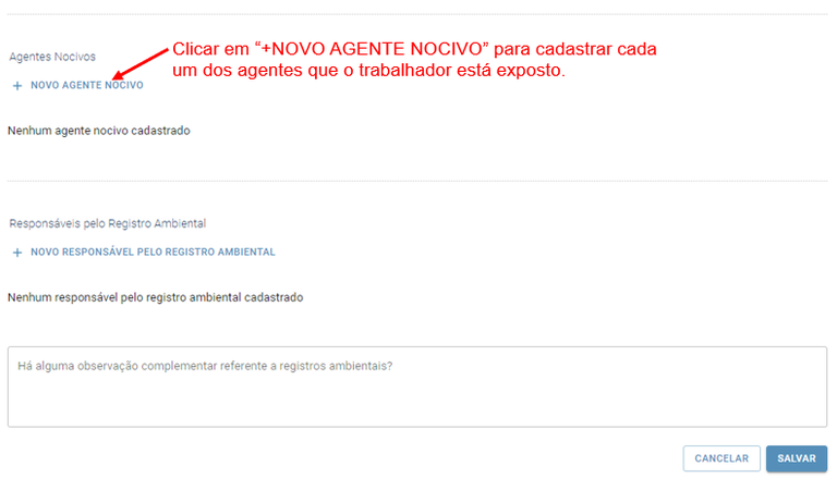 - Caso não seja preenchido, o sistema sinalizará o campo e incluirá um texto indicativo: