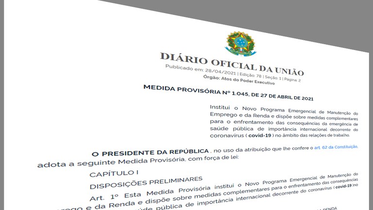 A Medida Provisória nº 1.045/21, publicada em 28 de abril, instituiu o Novo Programa Emergencial de Manutenção do Emprego e da Renda, nos mesmos moldes do programa criado em 2020, cujo objetivo é evitar demissões e garantir a renda dos trabalhadores no período de pandemia de COVID-19 (coronavírus).