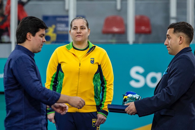 O ministro do Esporte, André Fufuca, participou da cerimônia de premiação no Centro de Esportes de Contato, na capital chilena, e entregou medalhas para os atletas nas categorias +70kg feminino e +90kg masculino.