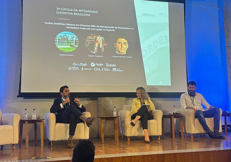 Durante participação na Terceira Cúpula da Integridade Esportiva, nesta quinta-feira (5/9), o secretário nacional de Futebol e Defesa dos Direitos do Torcedor, Athirson Mazolli, ressaltou a importância de o futebol dar continuidade à formação de valores obtidos inicialmente por referência familiar e educação, no combate a más condutas. Ele fez parte da roda de debate “Ilusões desfeitas: relatos em primeira mão de manipulação de resultados e o verdadeiro custo da manipulação no esporte”, ao lado do ex-jogador de futebol Matheus Gomes.