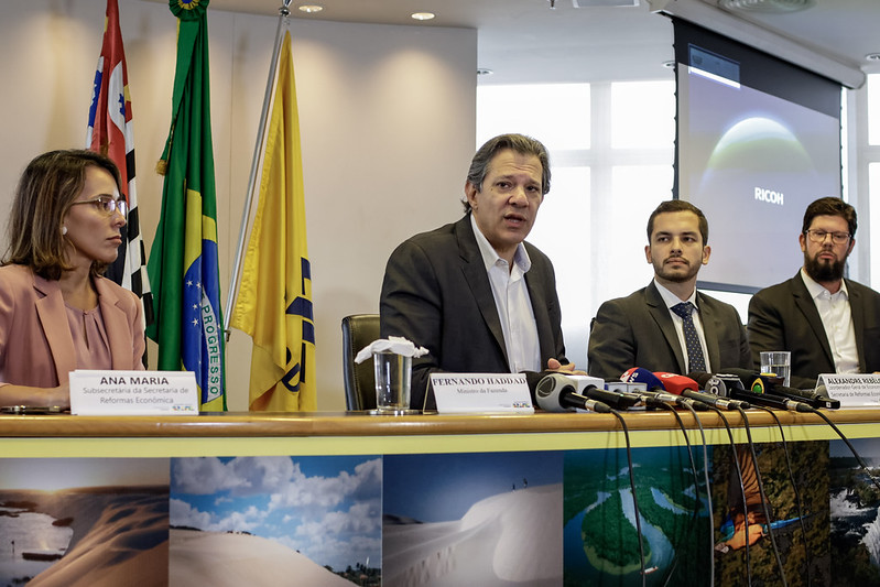 O ministro Haddad dá entrevista coletiva para falar da nova etapa do Desenrola Brasil Foto: Marcelo Justo
