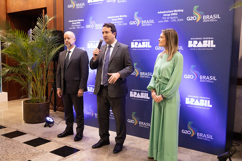O subsecretário de Finanças Internacionais e cooperação Econômica do Ministério da Fazenda, Antonio Freitas, explicou que o financiamento à infraestrutura resiliente à mudança climática é uma das prioridades do GT de Infraestrutura. Foto: Audiovisual G20 Brasil