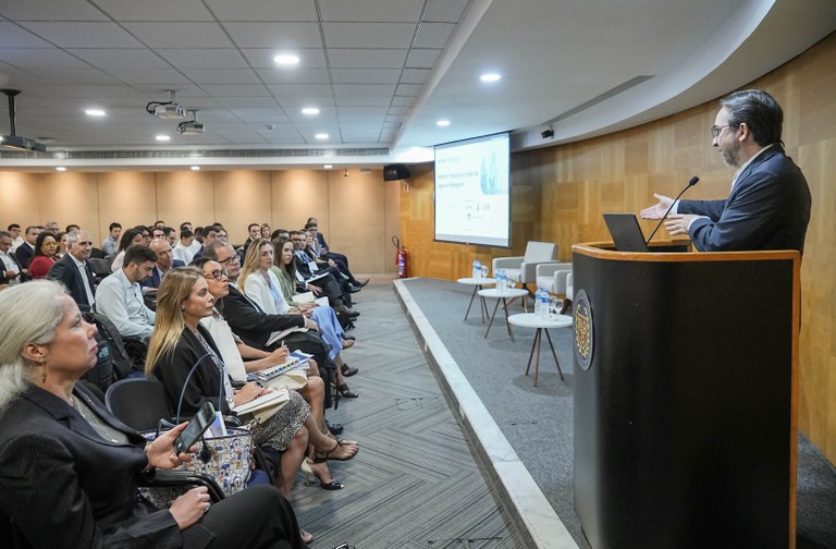 Bernard Appy fala no evento Reforma Tributária e o Setor de Seguros e Resseguros — Foto: Divulgação FGV