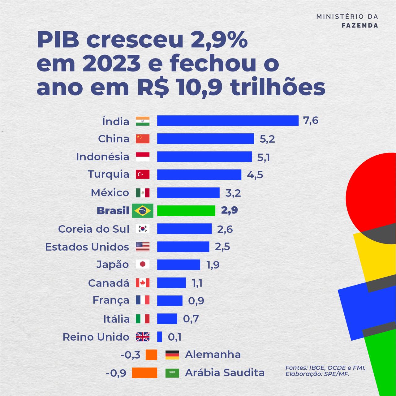 Comparação do Produto Interno Bruto Bruto brasileiro com o de outros países em 2023