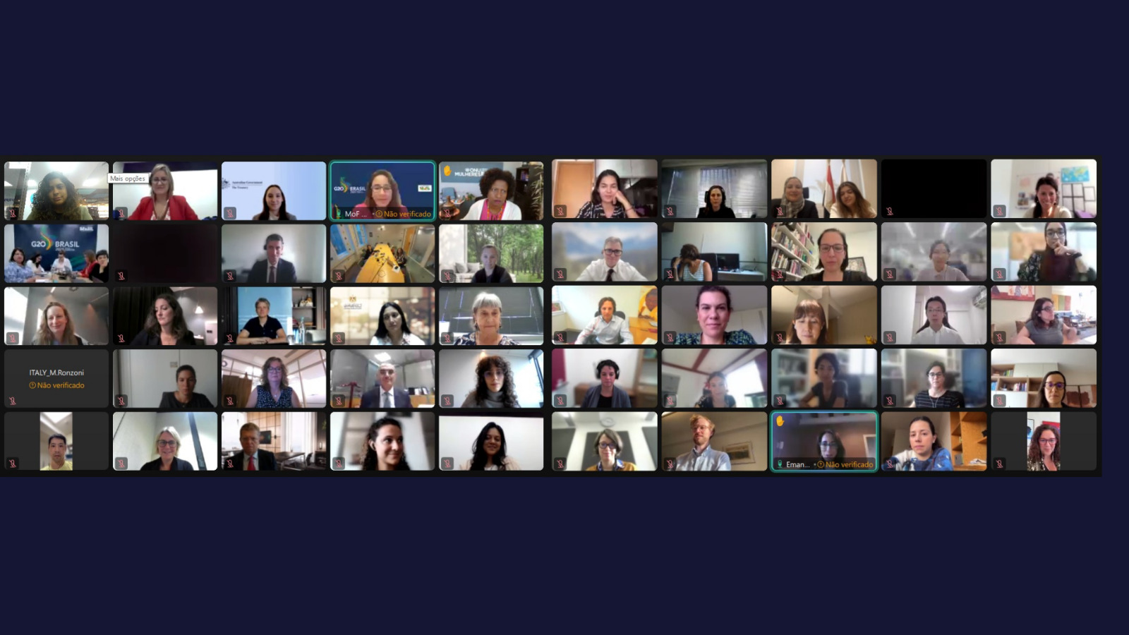 - Participação feminina na reunião de Ministros de Finanças e Presidentes de Bancos Centrais, em julho