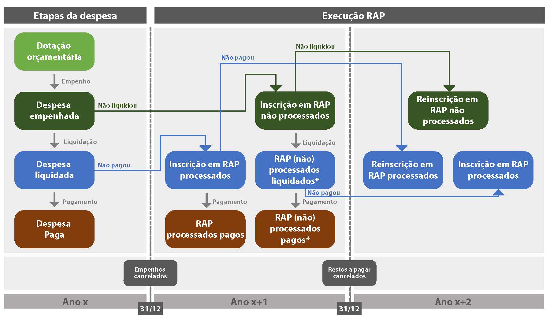 O conceito de RAP relaciona-se com os três estágios da despesa pública – empenho, liquidação e pagamento. Quando um produto ou serviço é contratado, é necessário reservar orçamento para o pagamento futuro. Esse é o empenho. A liquidação é o reconhecimento de que o produto foi entregue ou o serviço foi prestado. Somente após a liquidação ocorre o pagamento pelo bem ou serviço, quando o dinheiro sai da Conta Única do Tesouro e a obrigação é extinta.