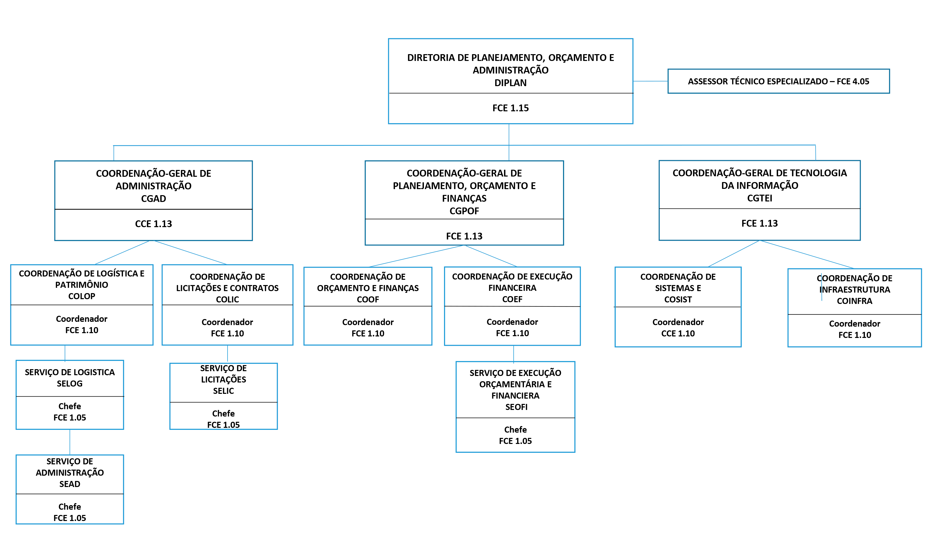 Organograma - Diretoria de Planejamento, Orçamento e Administração (DIPLAN) publicado 20/08/2025 16h46 Infográfico