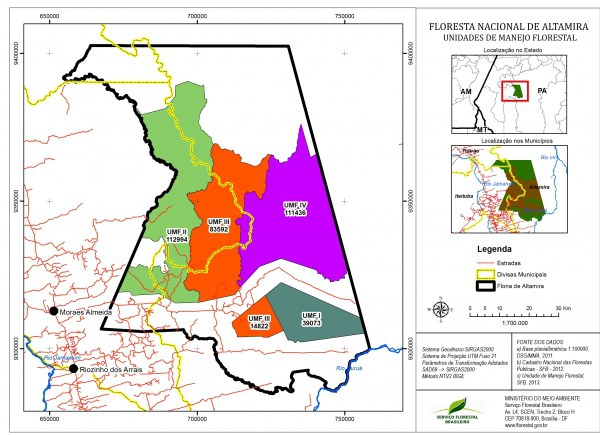 O edital para concessão de cerca de 360 mil hectares na Floresta Nacional (Flona) de Altamira, no Pará, foi publicado em 27 de agosto de 2013. A área está dividida em quatro Unidades de Manejo Florestal (UMFs), com tamanhos distintos.