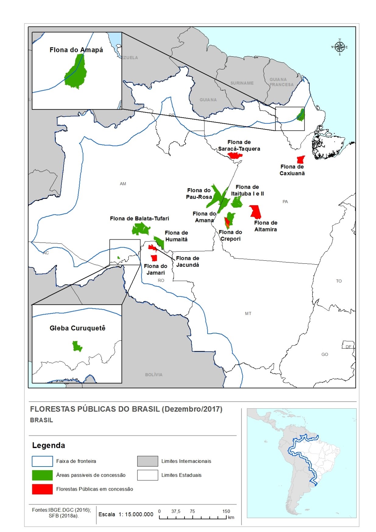 Segundo a proposta, oito Florestas Nacionais (Flonas) e uma área de gleba não destinada, localizadas nos estados do Pará, Amapá e Amazonas, poderão ser concedidas no próximo ano. Como novidades nesta edição, foram incluídas as Flonas de Balata-Tufari e Pau-Rosa, ambas localizadas no Amazonas.