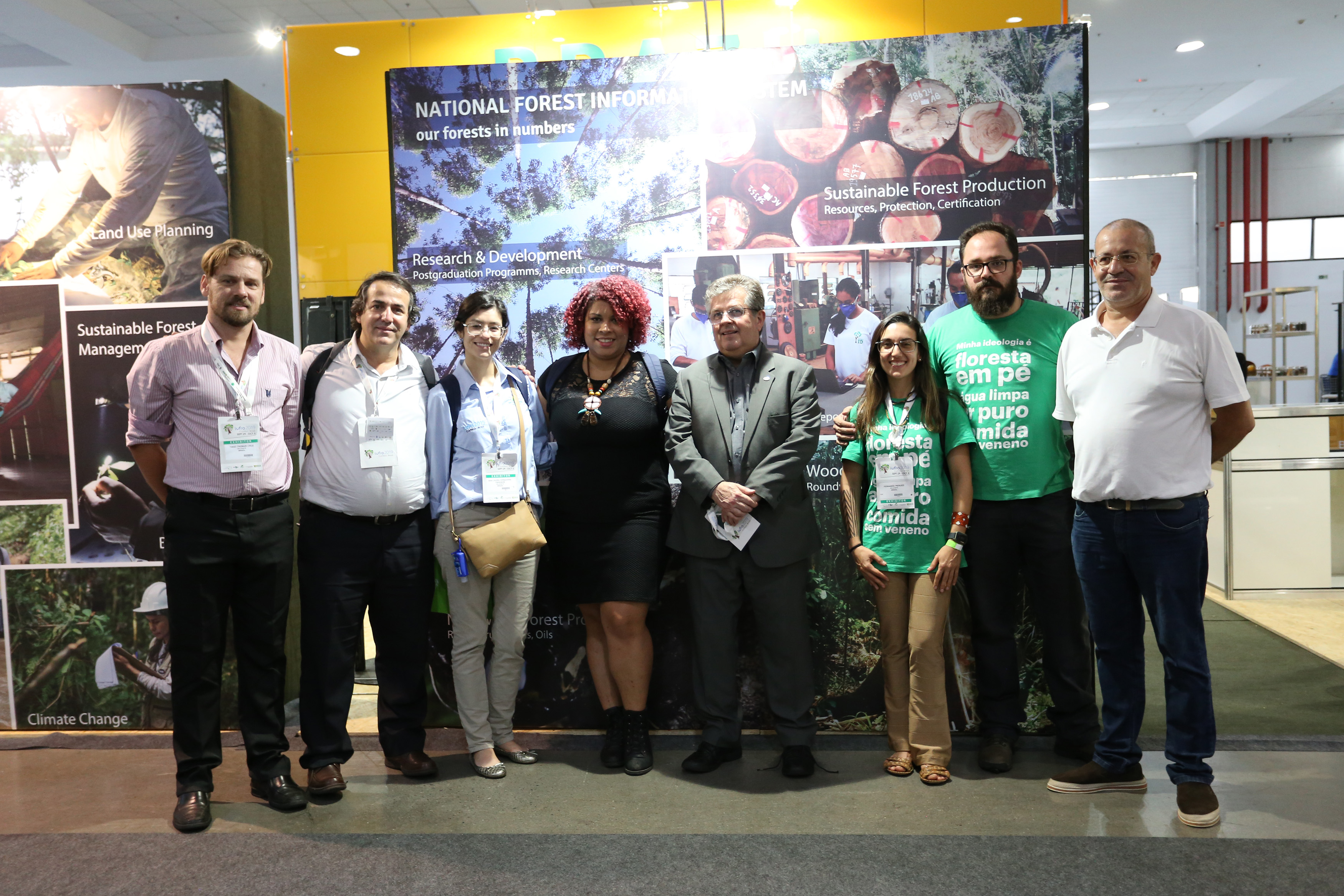Técnicos do Serviço Florestal participaram ativamente como pesquisadores e expositores nos minidebates e eventos paralelos (os famosos minitalks e side events, respectivamente), mesas técnicas, mini plenárias e reuniões diversas. Além disso, divulgaram os programas do órgão nos estandes montados no Espaço Brasil e na Feira da Sociobiodiversidade.