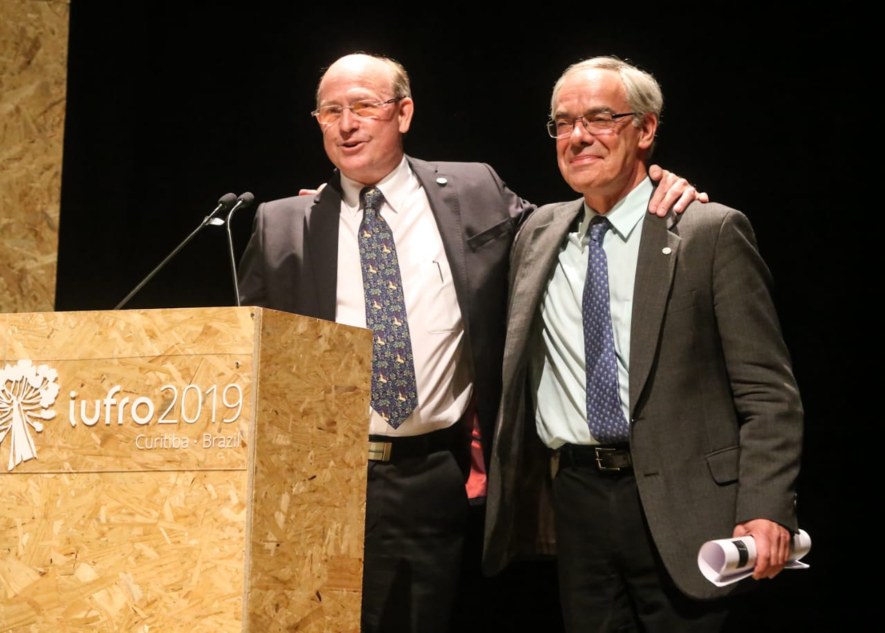 A cerimônia de encerramento aconteceu na tarde deste sábado (06/10) no teatro da Expo Unimed, Curitiba, e contou com a presença do presidente da Iufro, Mike Wingfield; do diretor-geral do Serviço Florestal Brasileiro, Valdir Colatto, que representou a ministra da Agricultura, Pecuária e Abastecimento, Tereza Cristina; do presidente e da vice-presidente do Comitê Organizador do Iufro 2019, Joberto Veloso e Yeda de Oliveira, respectivamente; do presidente do Comitê Científico do Iufro 2019, Jerry Vanclay; do diretor chefe da Embrapa Florestas, Tadeu Iede; da reitora da Universidade Federal do Paraná, Graciela Muniz; da embaixadora da Suécia no Brasil, Johanna Brismar Skoog; e do novo presidente da Iufro, John Parrota.