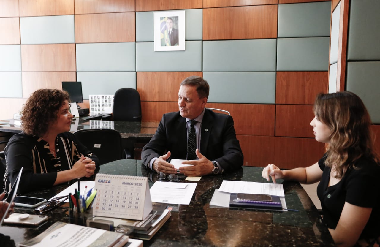 Dirigentes do Serviço Florestal Brasileiro receberam a secretária do Meio Ambiente e Desenvolvimento Sustentável (Semad) de Goiás, Andréa Vulcanis, e a superintendente de Unidades de Conservação e Regularização Ambiental da Semad, Janaína Rocha, nesta segunda-feira para tratativas acerca do Projeto FIP CAR, da análise dinamizada do Cadastro Ambiental Rural (CAR), integração da base de dados, dentre outros.