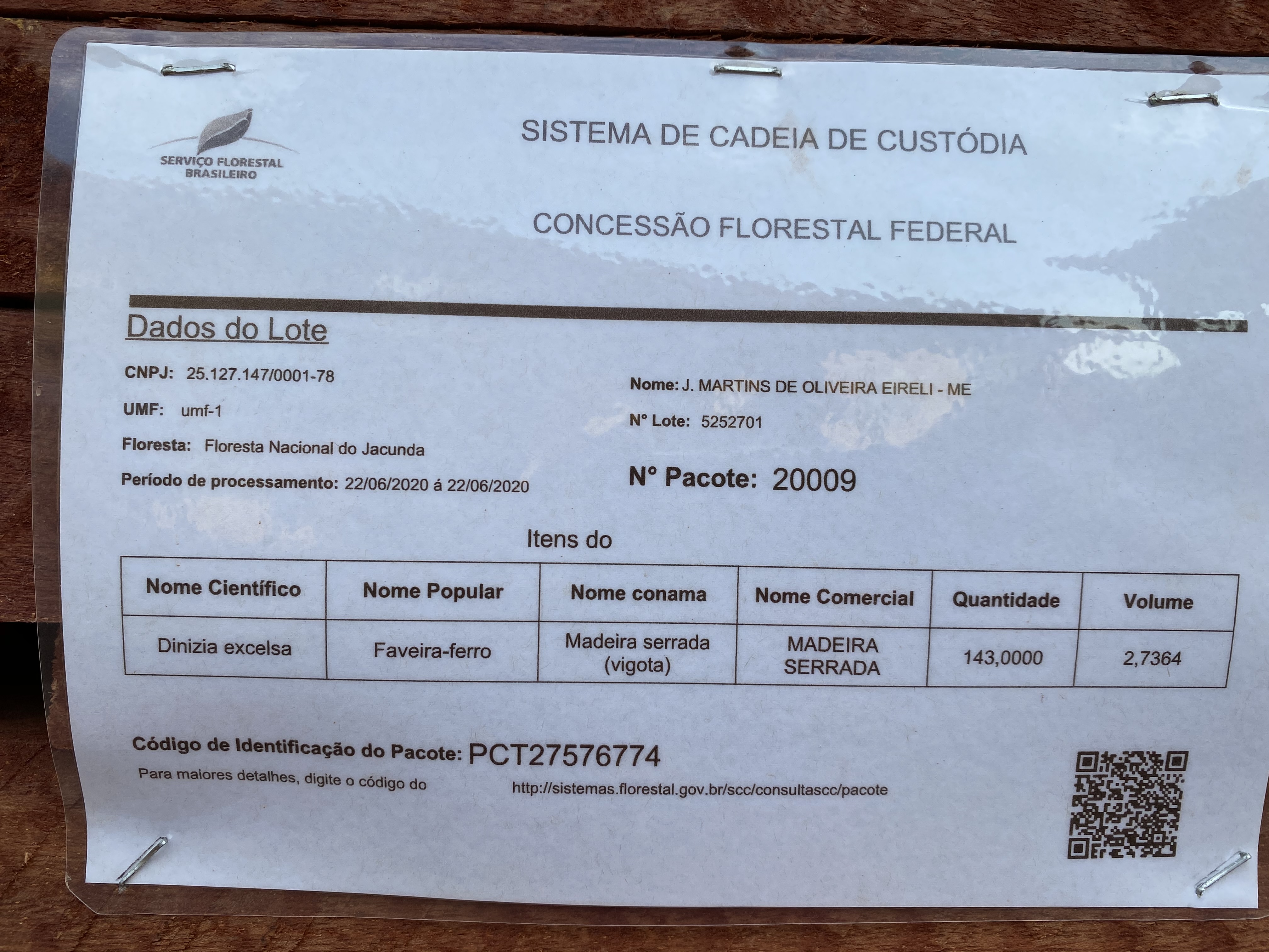 A empresa J. Martins de Oliveira obteve permissão do Serviço Florestal Brasileiro para utilizar o Sistema de Cadeia de Custódia (SCC). Parceria pioneira com usuário fora do processo de concessão florestal só foi possível porque que a J. Martins processa exclusivamente madeira obtida da concessão florestal.