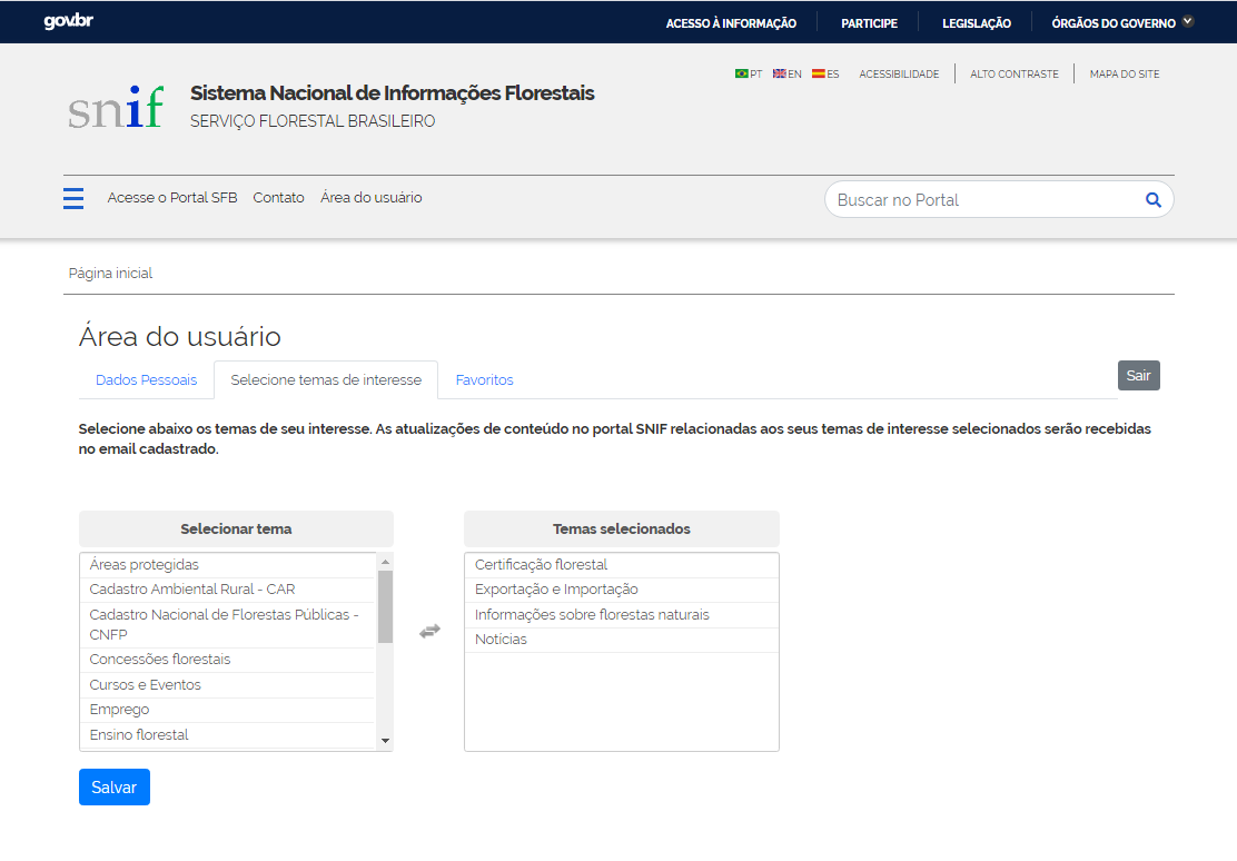 A partir dessas informações, sempre que houver a inserção de um novo conteúdo ou atualização, o sistema vai enviar ao usuário mensagem, via e-mail, informando a atualização daquele assunto de interesse. O SNIF pretende conhecer o público que navega por esse ambiente e orientar a disponibilização de informações florestais que produz.