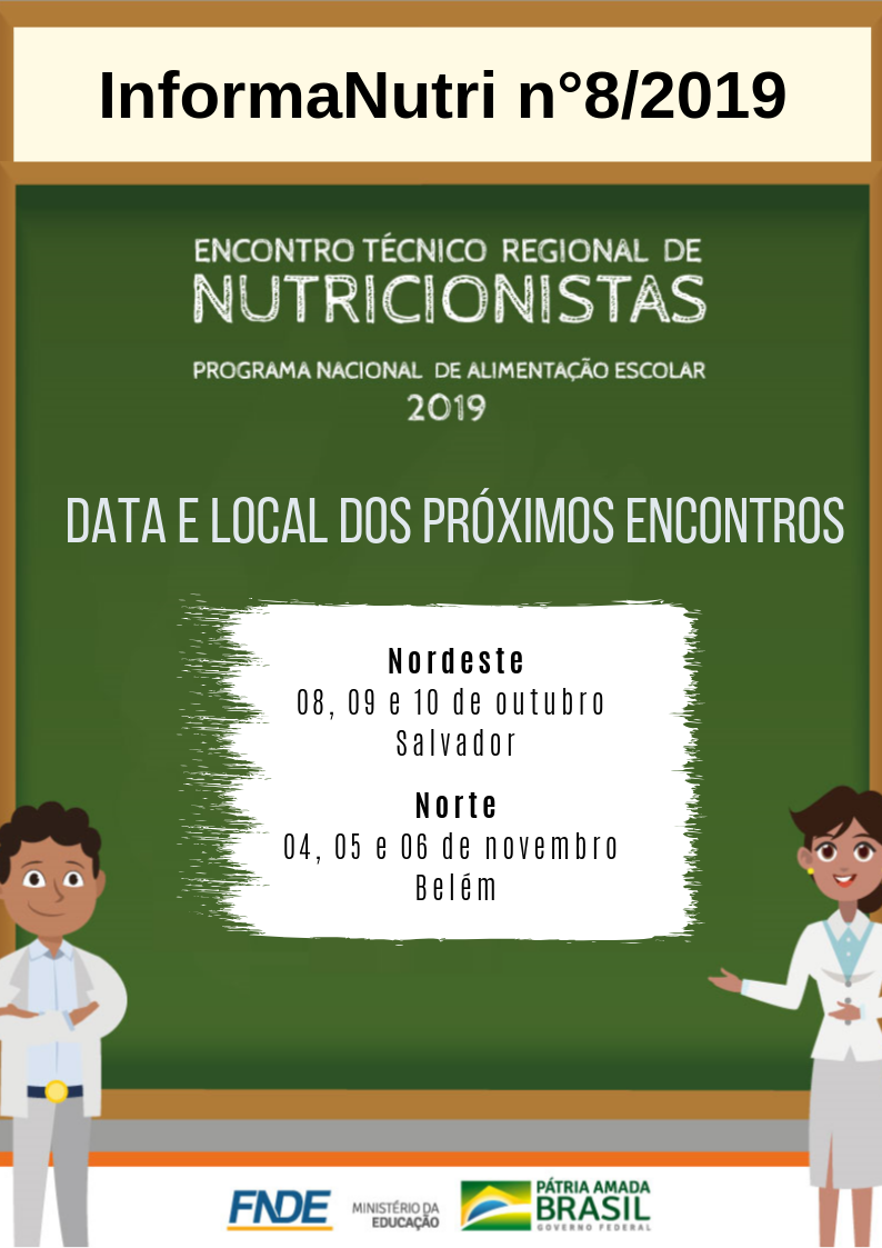 - InformaNutri nº 17 - Seminários Regionais - Formação e Valorização de quem alimenta o Brasil (Para Nutricionistas e Merendeiras do PNAE) - Inscrições Centro-Oeste e Nordeste