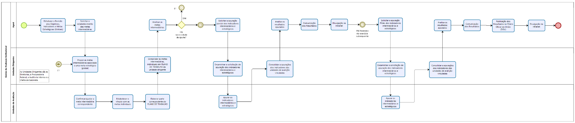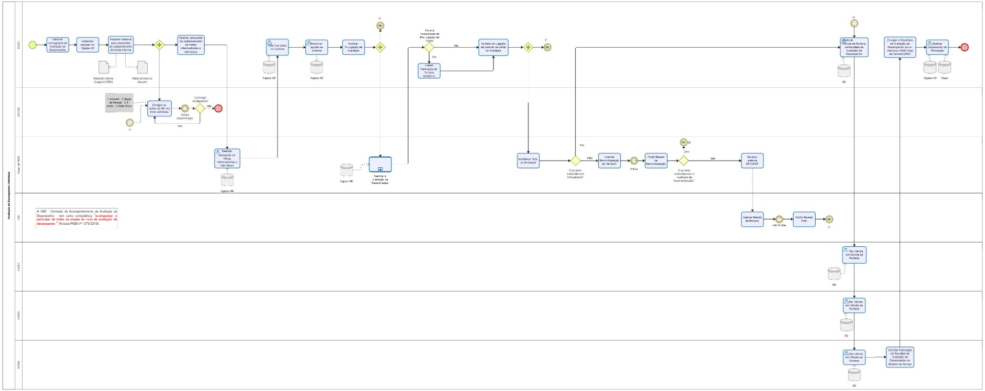 Por se tratar de processos controlados em 2 níveis, a forma de gerenciá-los exige um conjunto de ações e esforços especializados. Dessa forma, A Avaliação de Desempenho do FNDE é considerada em 2 processos que se complementam e congregam para garantir o atingimento dos objetivos estratégicos e, consequentemente, a visão de futuro da Autarquia. A seguir, apresentamos os respectivos fluxos.