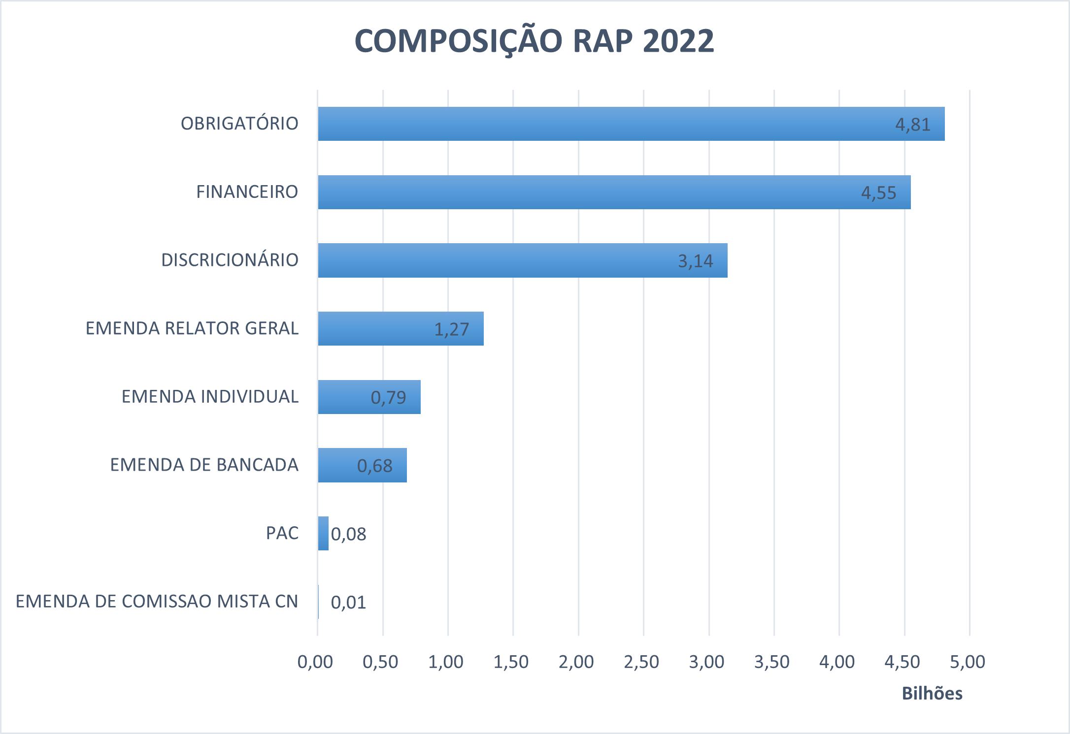 Outro aspecto importante da execução financeira é a gestão dos Restos a Pagar (RAP). Nos últimos anos o FNDE vem desenvolvendo um trabalho junto às áreas gestoras, no intuito de diminuir o estoque de Restos a Pagar, bem como, no de minimizar as inscrições de empenhos em RAP. Foi inscrito no exercício 2022 cerca de R$ 9,4 bilhões em restos a pagar (RAP), referente a Notas de Empenho emitidas em 2021, o que representa redução de 3% em relação à inscrição efetuada no ano anterior. No gráfico subsequente, está discriminada a composição do estoque de RAP, levando em consideração os identificadores de Resultado Primário (RP’s 0, 1, 2, 3, 6, 7, 8 e 9).