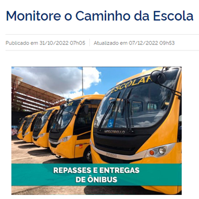 Durante o exercício de 2022, o FNDE repassou por meio do Programa Caminho da Escola o valor de R$ 187.228.046,79 a 6 secretarias de estado de educação e a 203 municípios.