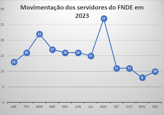 Quanto ao quadro funcional dos servidores do FNDE, com base na folha de pagamento do segundo semestre de 2023, segue extração de dados: