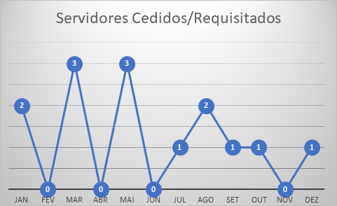De acordo com o controle e gerenciamento no sistema SEI, foram 14 (quatorze) servidores cedidos, requisitados e/ou requisitados ente órgãos cessionários em 2023.