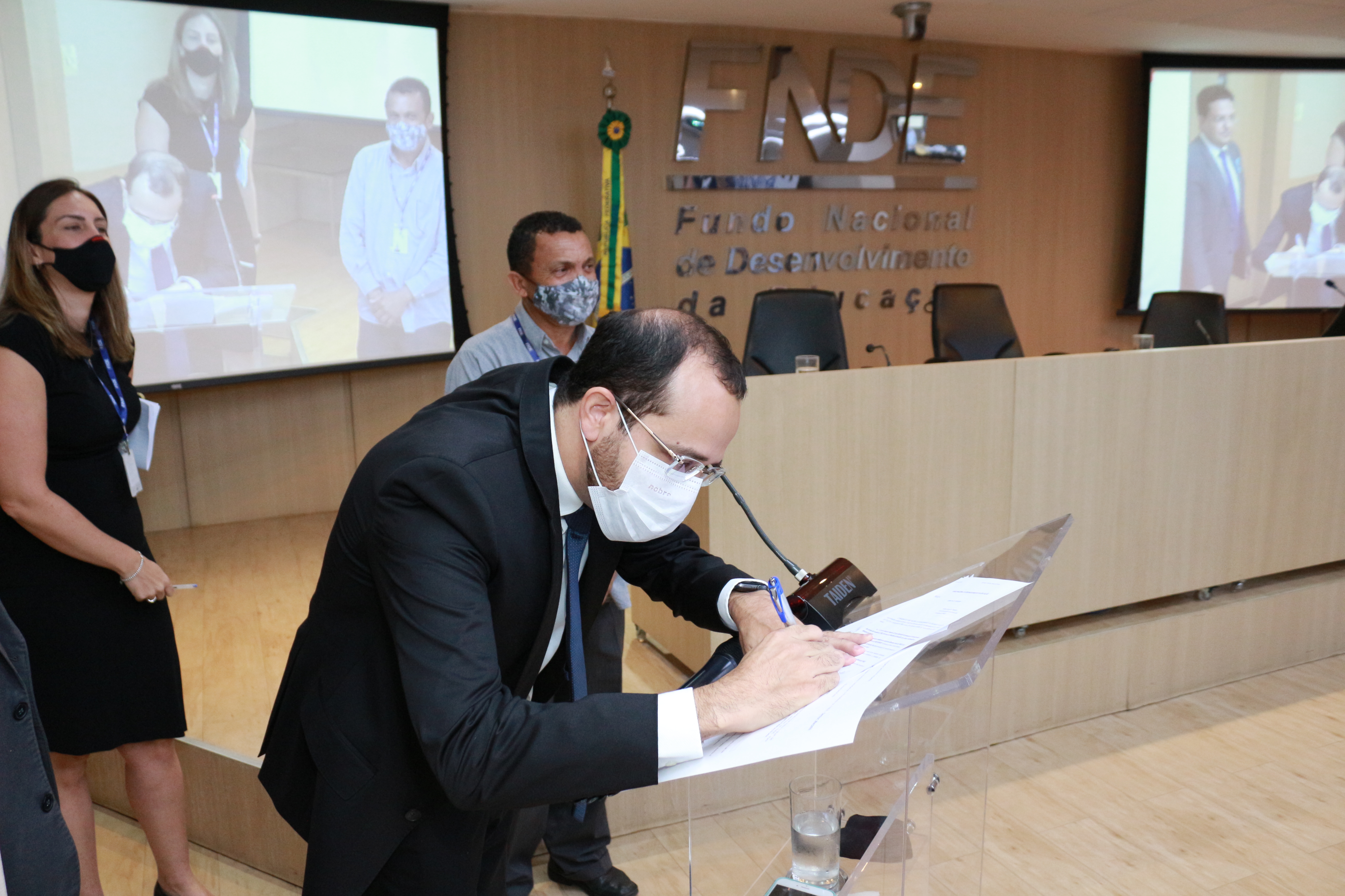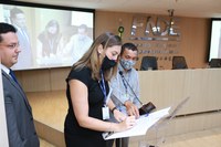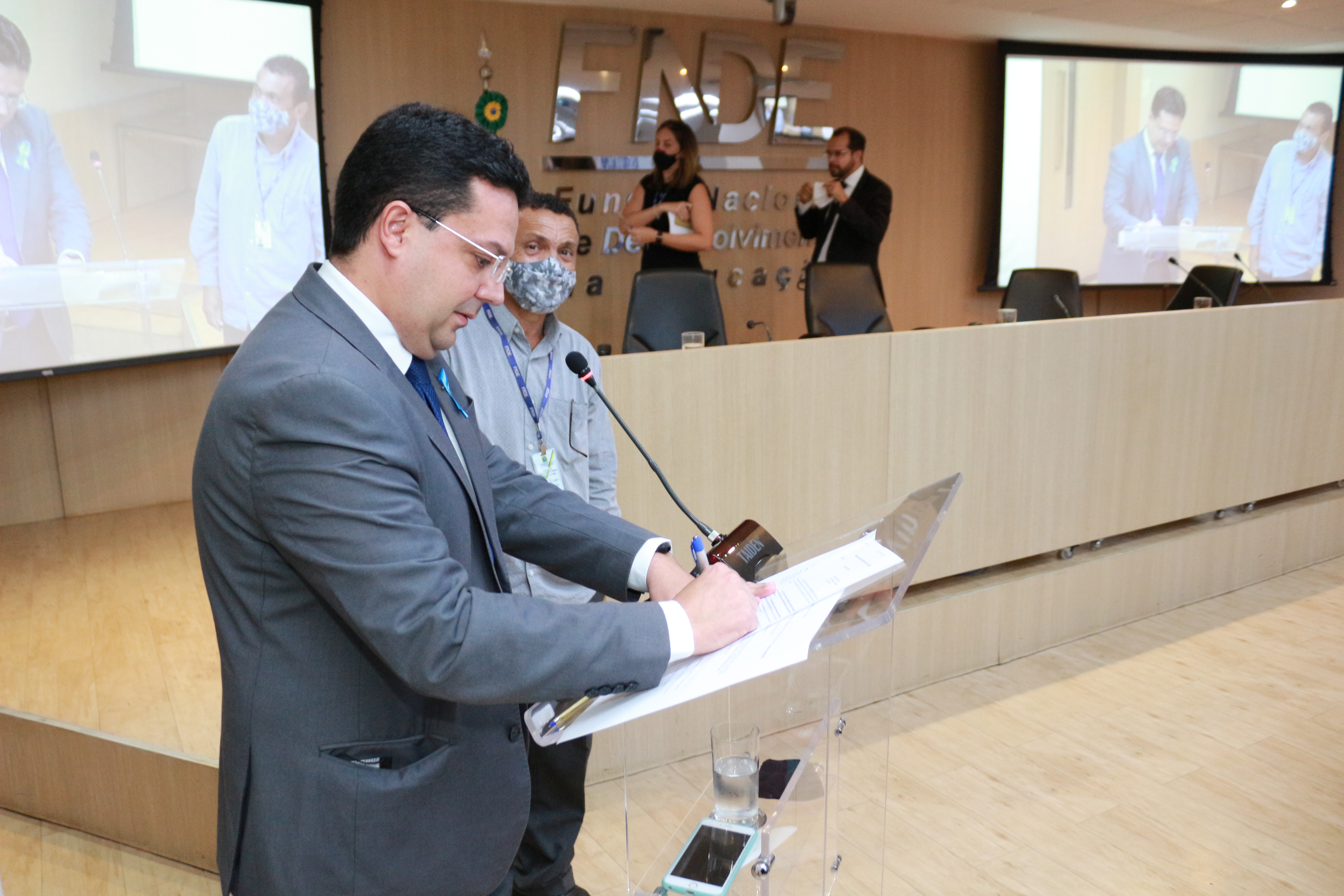 A cerimônia desta quarta-feira marcou ainda a entrega da placa de ex-presidente a Karine Santos, servidora da casa e atual coordenadora-geral do Programa Nacional de Alimentação Escolar (Pnae). Antecessora do atual presidente, Marcelo Ponte, ela dirigiu o FNDE entre 23 de dezembro de 2019 e 1° de junho de 2020. “Eu tenho orgulho de trabalhar com a educação, de trabalhar com pessoas comprometidas com a educação e de fazer parte do corpo técnico de servidores do FNDE. Muito obrigada a esta gestão pelo reconhecimento”, afirmou Karine.