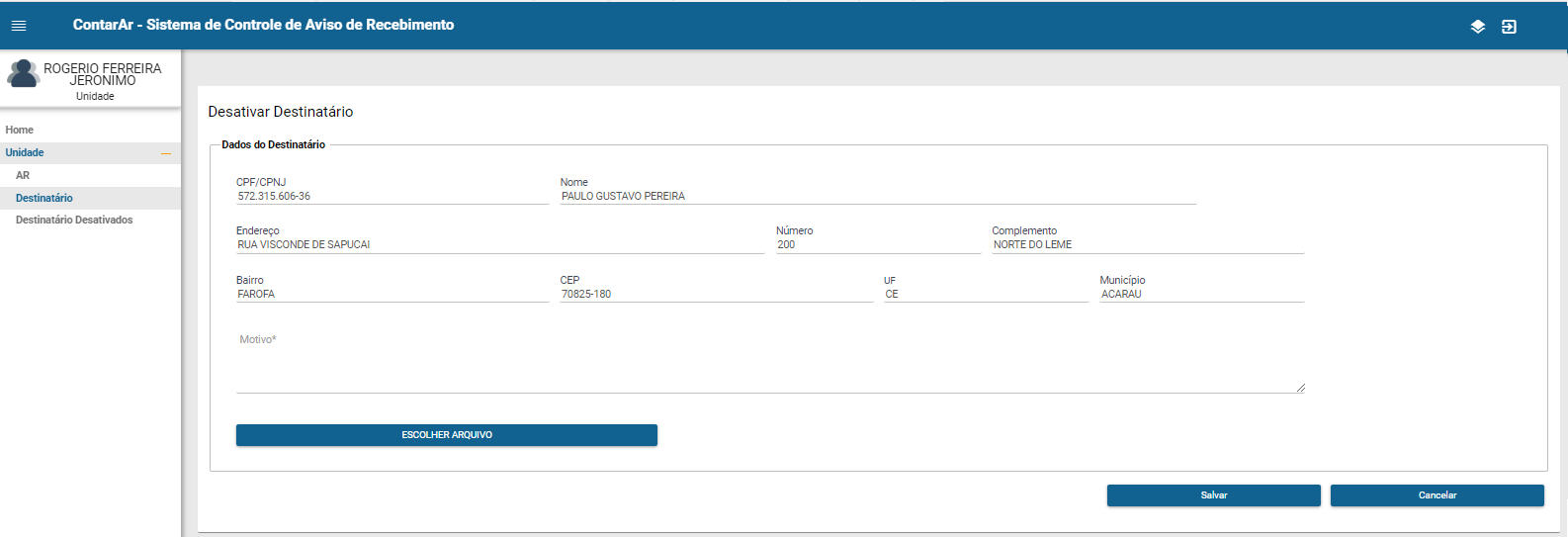 DesativarDestinatario