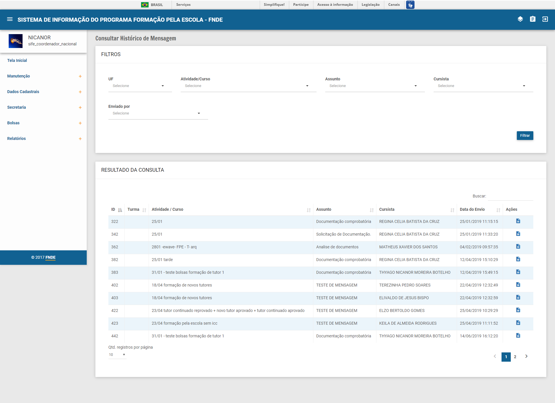 Dados do Governo Federal