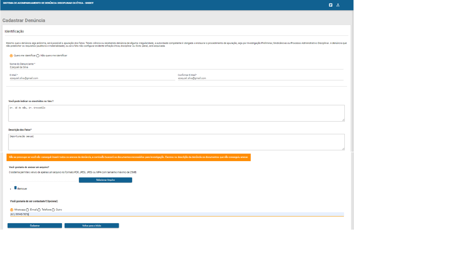 SISDET - Denúncia Eletrônica