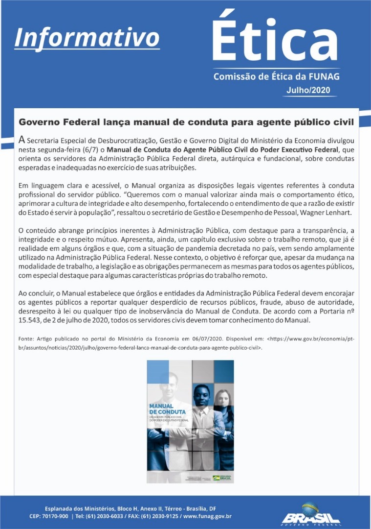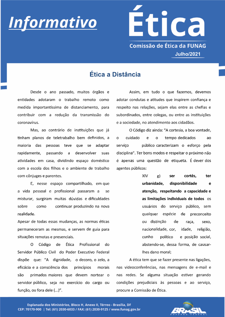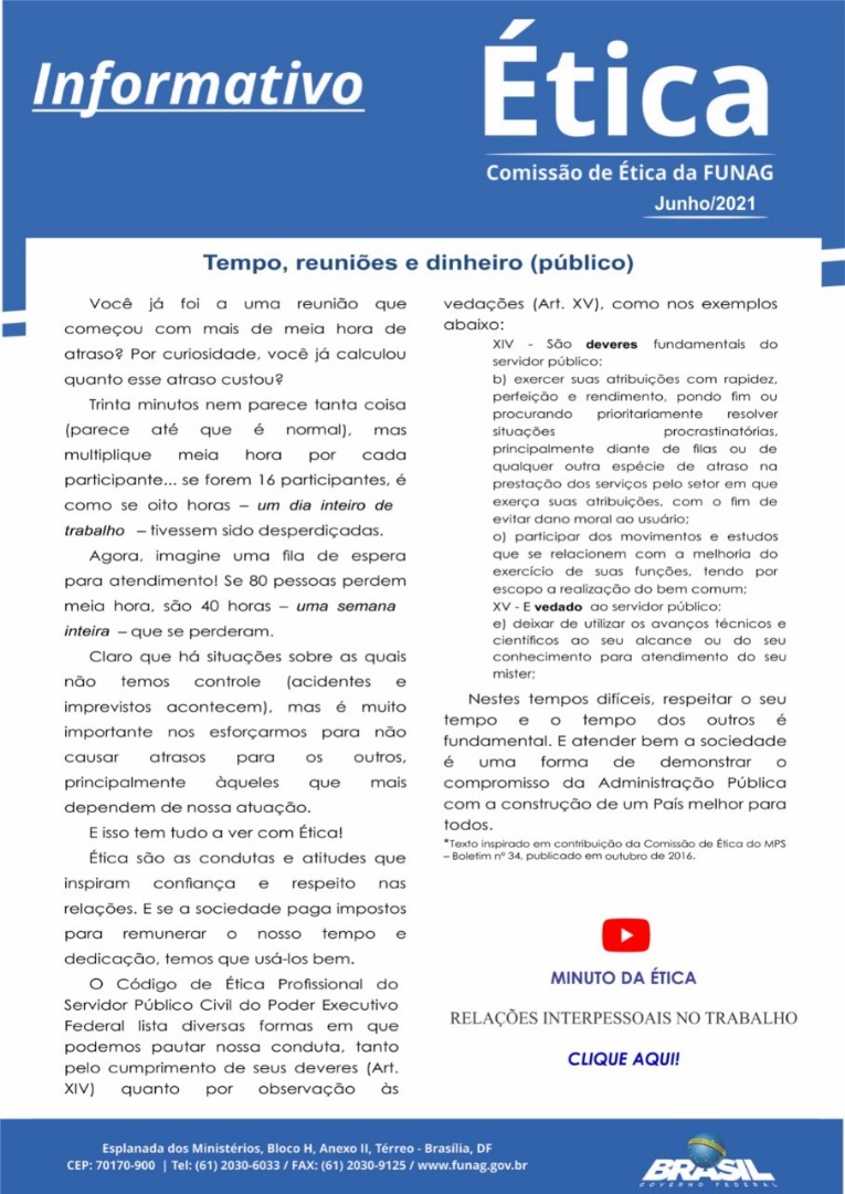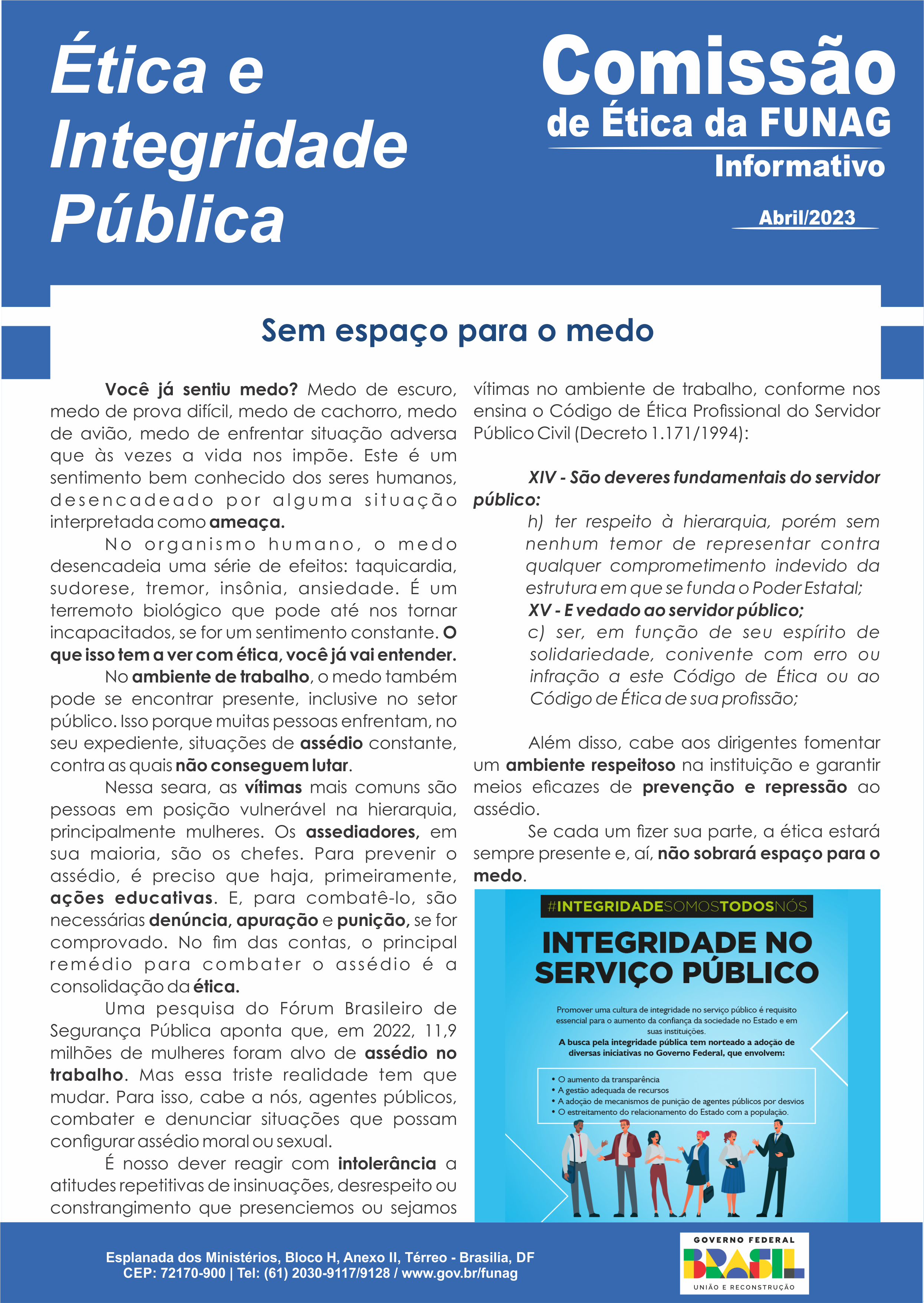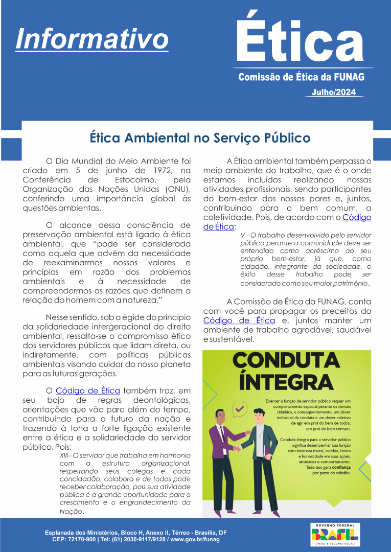 Acesse e leia os informativos enviados pela Comissão de Ética da FUNAG:
