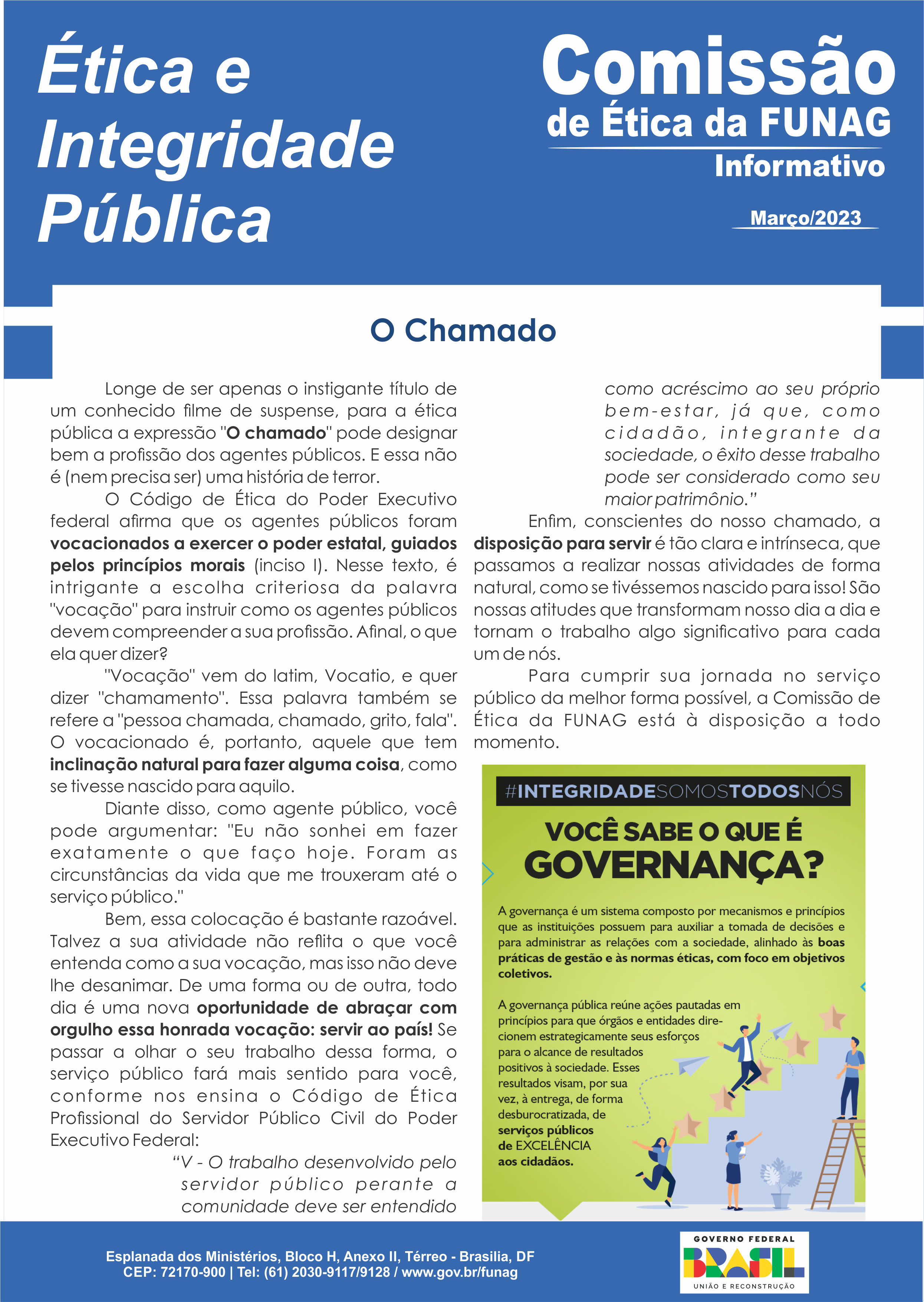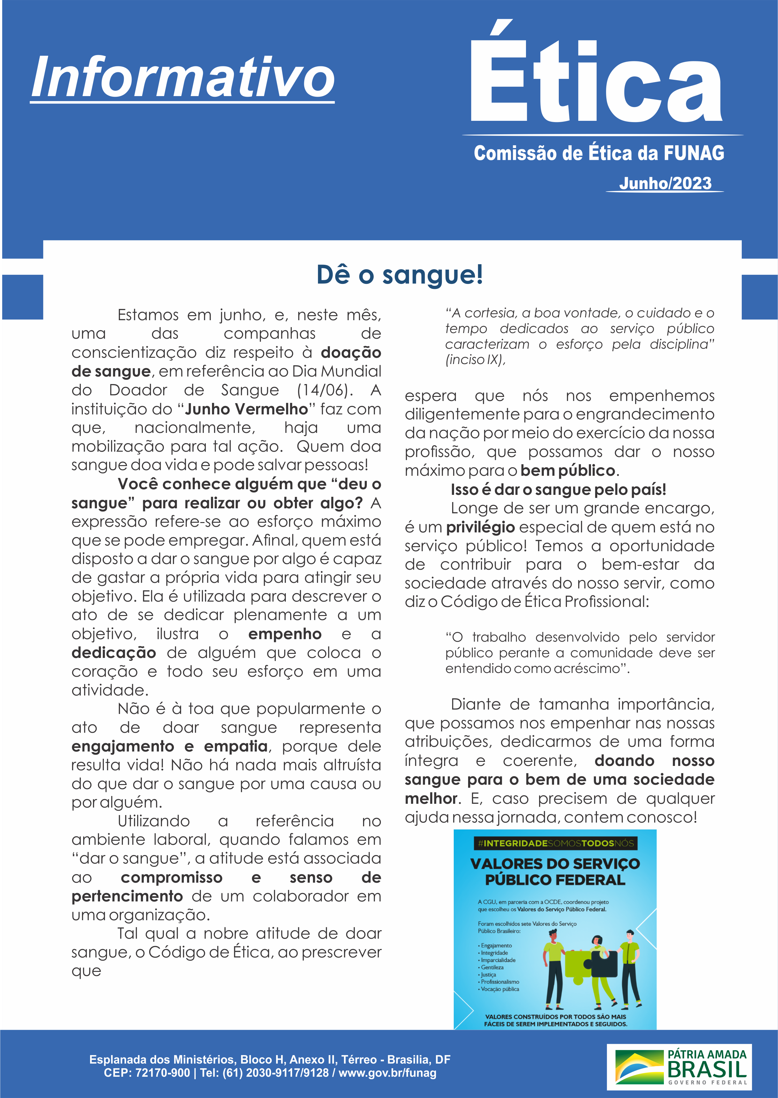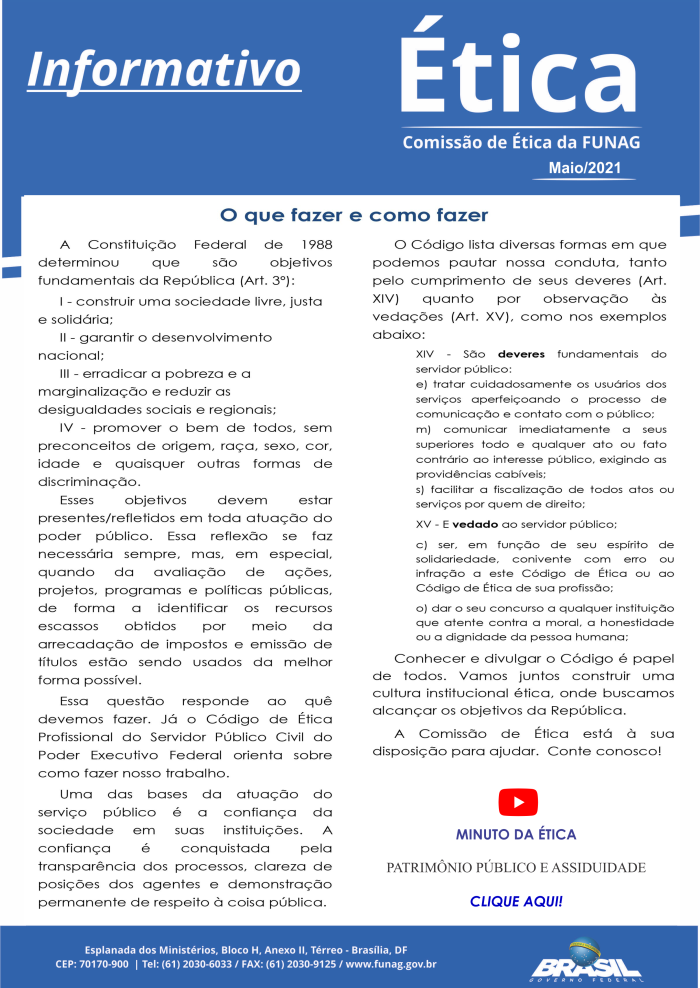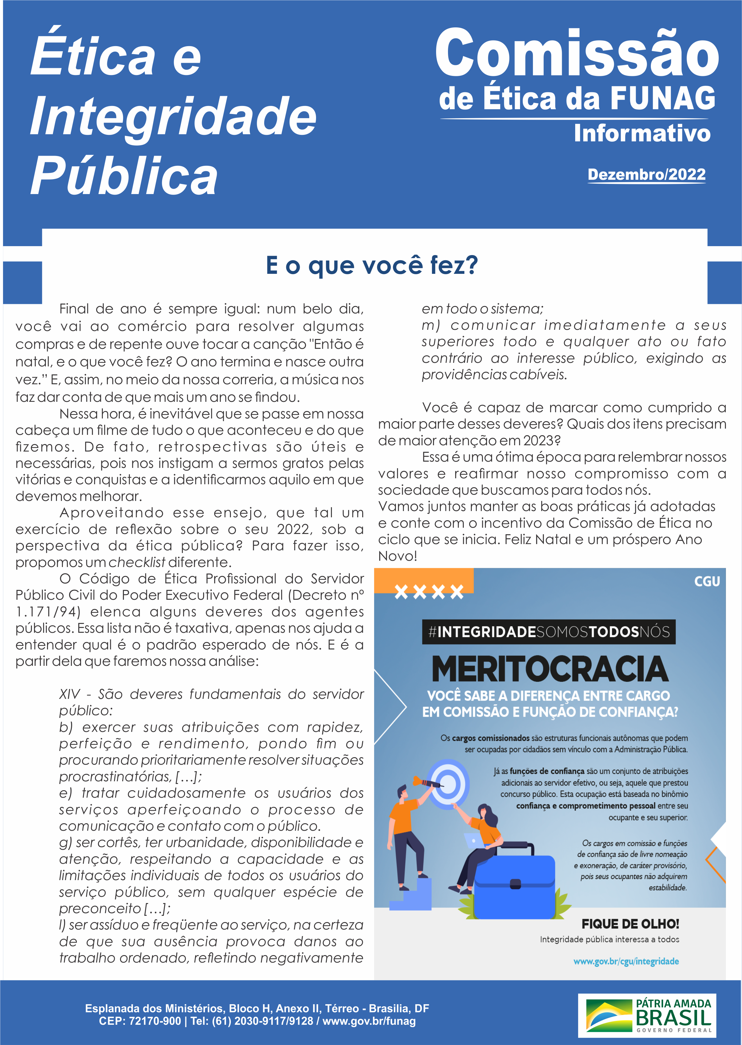 Acesse e leia os informativos enviados pela Comissão de Ética da FUNAG: