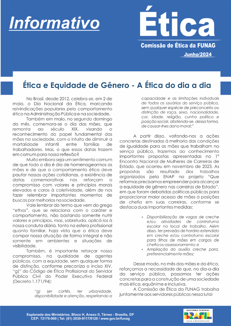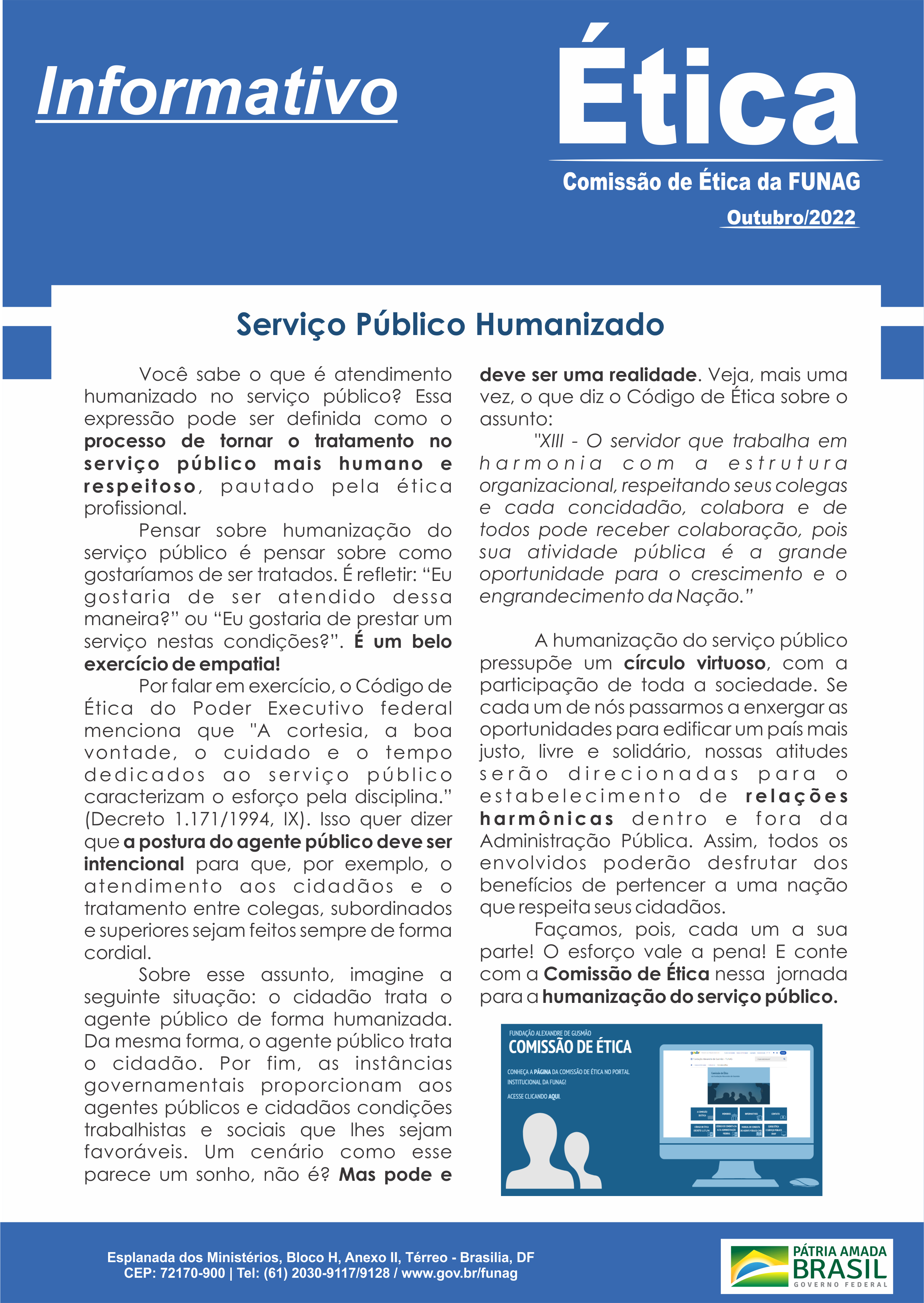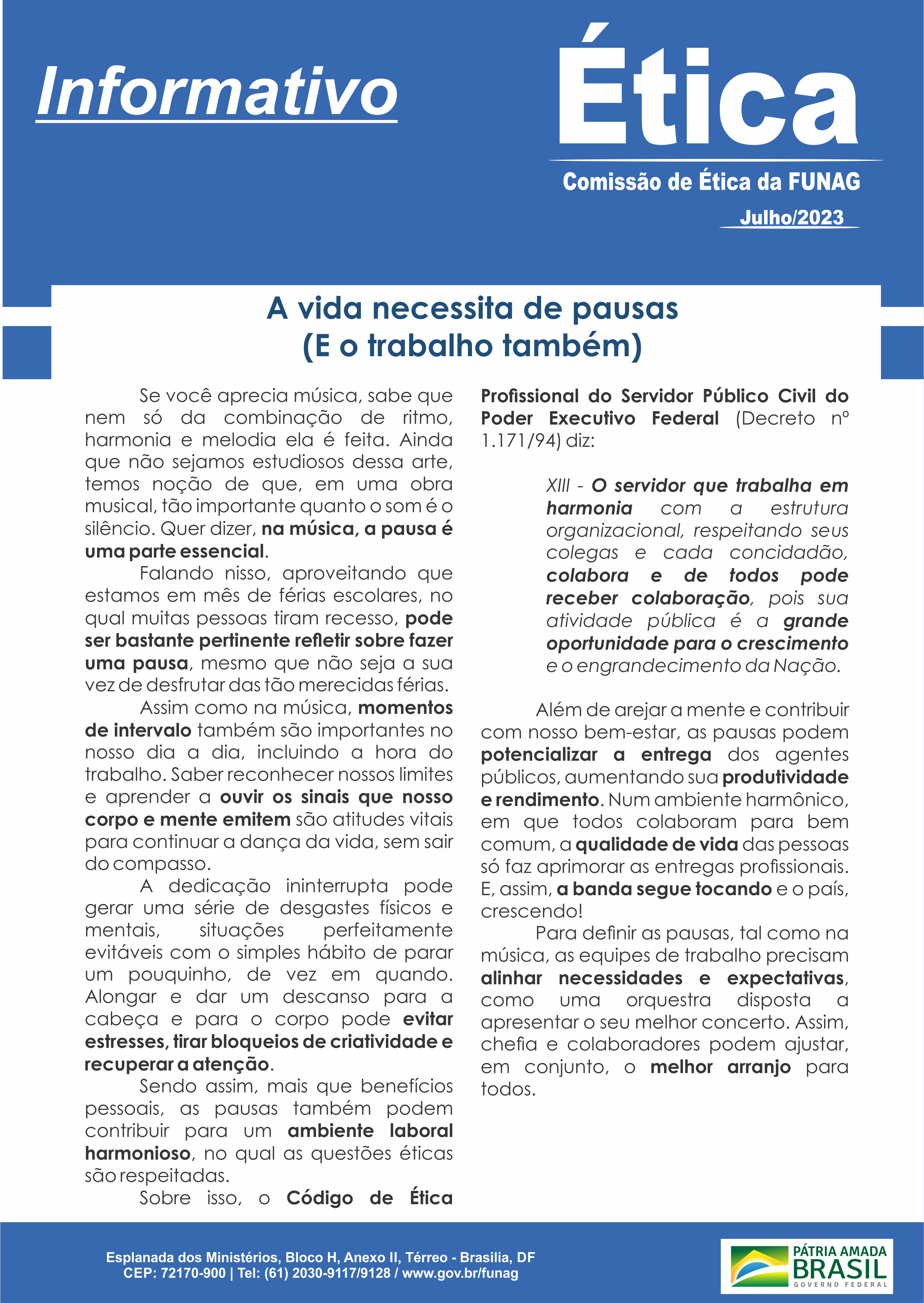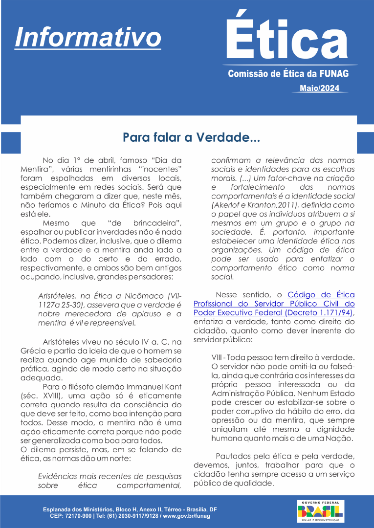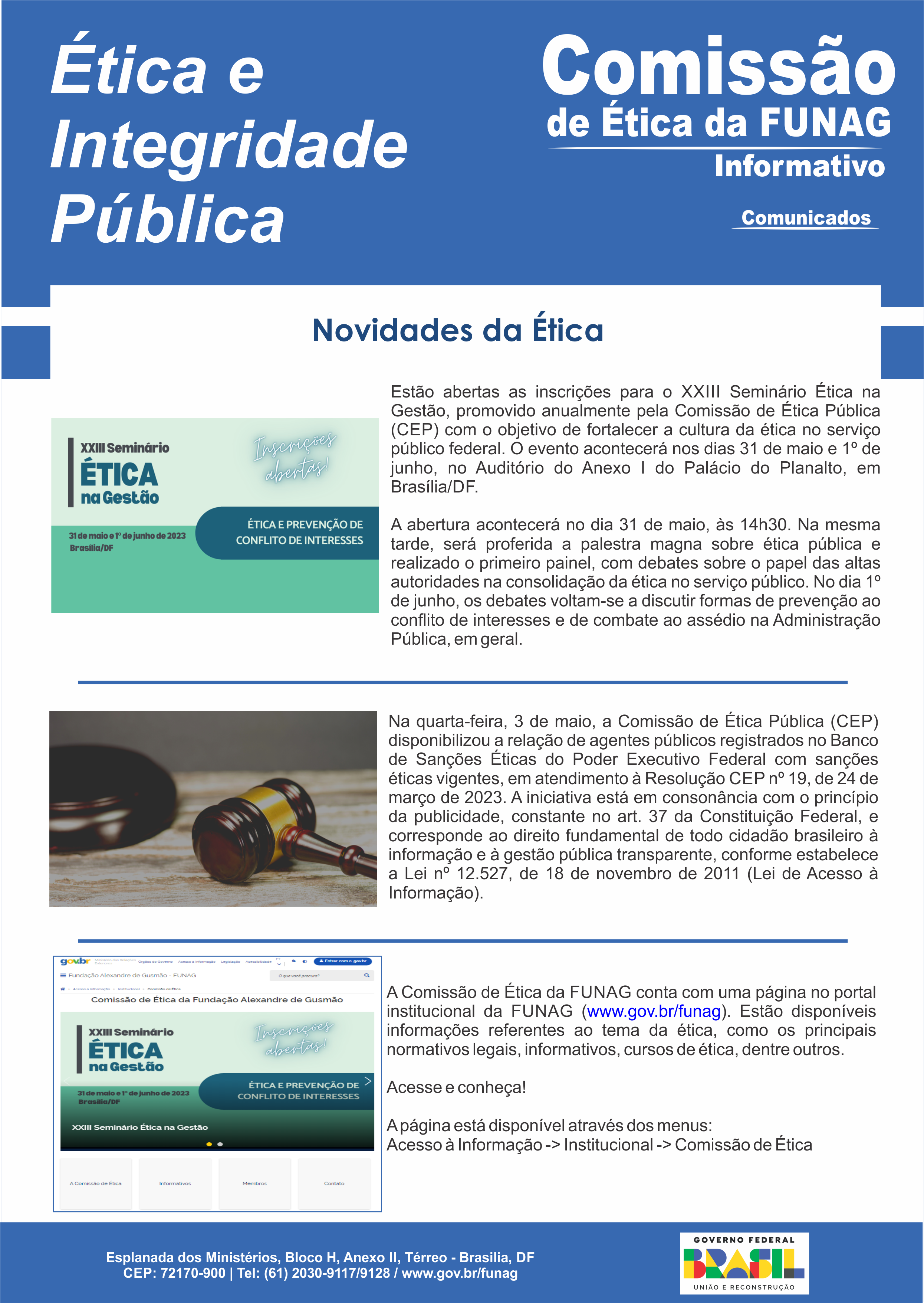 Acesse e leia os informativos enviados pela Comissão de Ética da FUNAG: