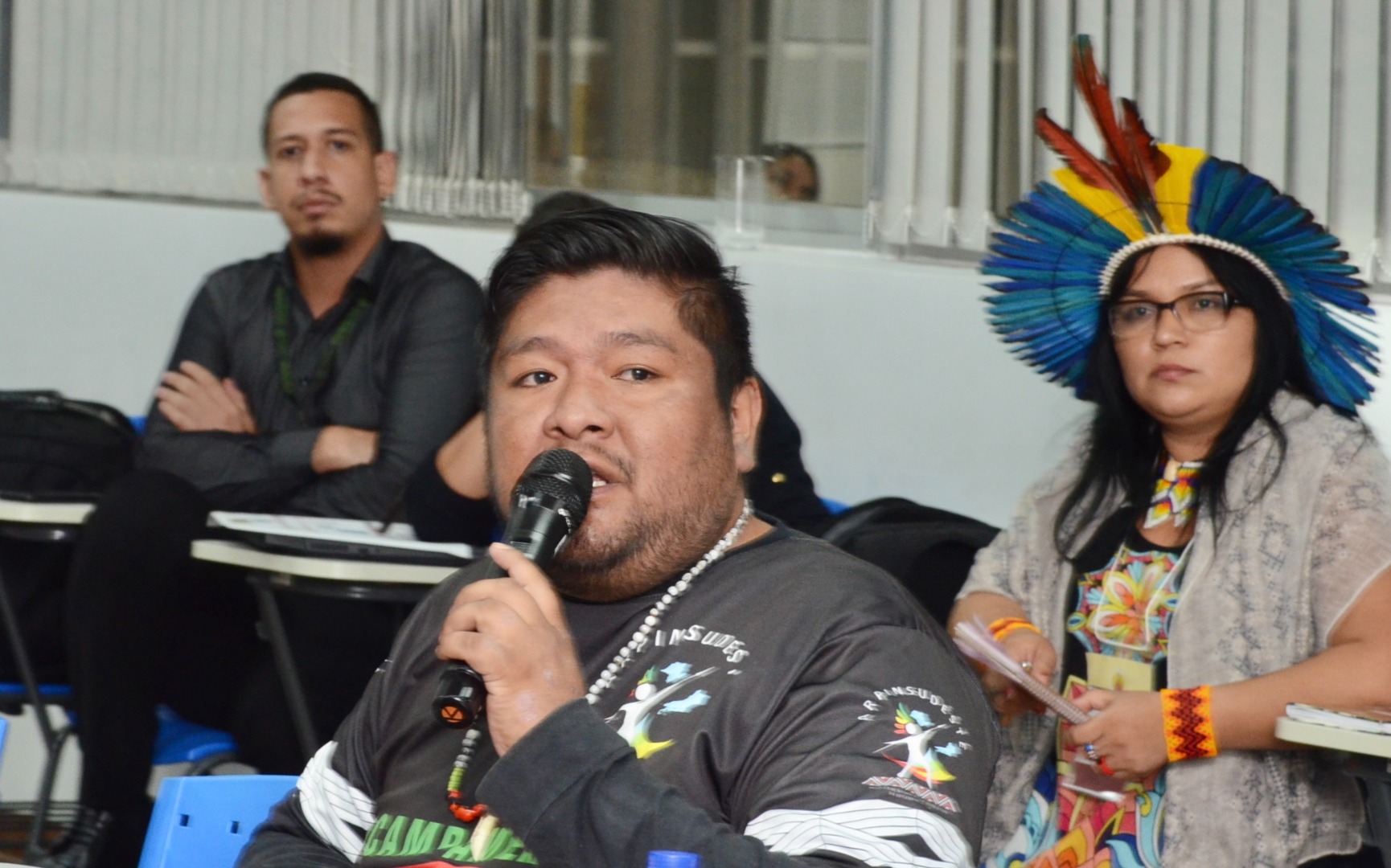 - Eloy Terena, secretário-executivo do MPI, falou do trabalho que vem sendo feito pelo Ministério para alcançar mecanismos de financiamento da PNGATI | Foto: Mário Vilela/Funai