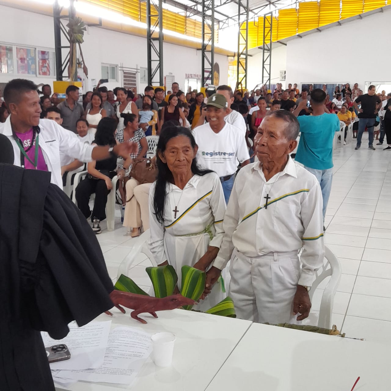 É o caso de Idelino Fernandes e Justina Cesário. O casal indígena do povo Tikuna, do Amazonas, aproveitou o mutirão de acesso à documentação civil na terra indígena Tikuna Feijoal para se casar. Após 60 anos juntos, Idelino e Justina puderam realizar o sonho.
