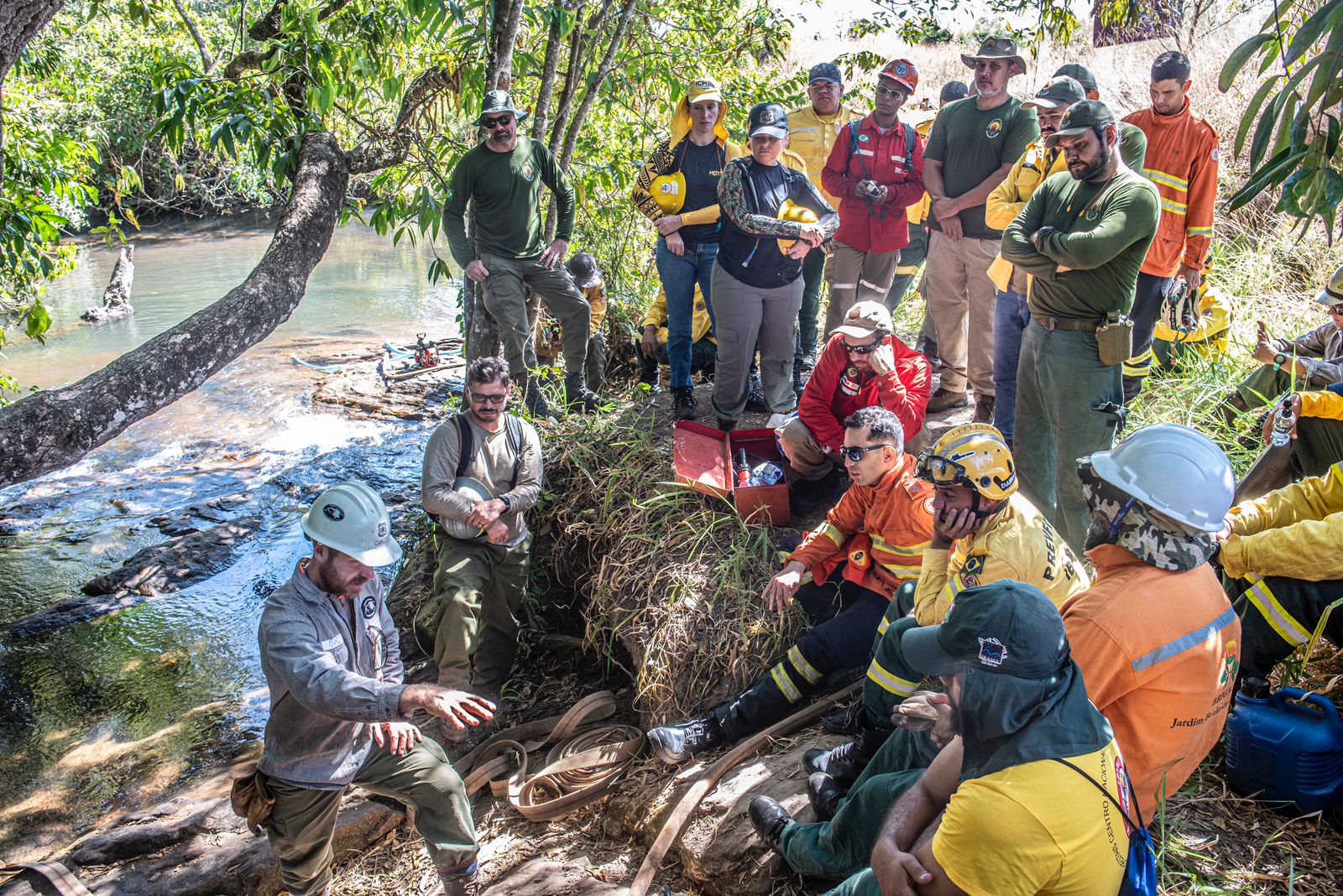 Atualmente atuando como especialista em manejo integrado do fogo no USFS, Pedro Paulo Xerente, indígena do povo Xerente do Tocantins, trabalhou por 12 anos como brigadista do Prevfogo e defende a importância da atuação dos povos indígenas na prevenção e combate ao fogo nas terras em que vivem. “A terra indígena é a casa do indígena, então ele conhece cada rio que passa, cada estrada, cada área sensível, cada risco que tem dentro do território, seja de animais peçonhentos, seja de árvores caírem. É muito importante ter alguém com um conhecimento macro do território”, pontua.