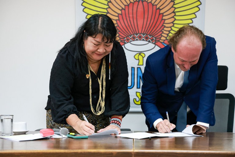 - Em setembro, a presidenta da Funai, Joenia Wapichana, e o presidente do Ibama, Rodrigo Agostinho, assinaram a prorrogação do ACT | Foto: Lohana Chaves/Funai